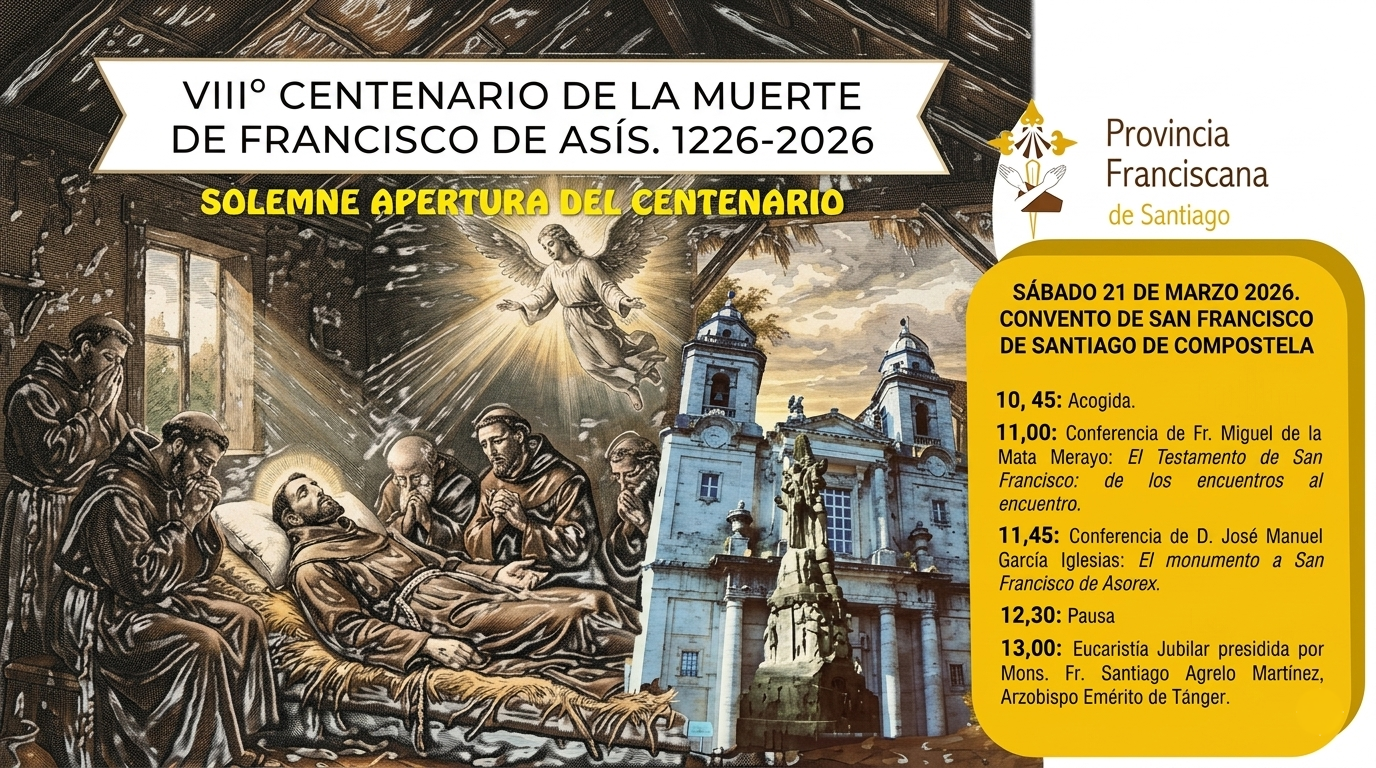 La comunidad franciscana de Santiago inauguró la conmemoración del VIII Centenario del tránsito de San Francisco de Asís, un hito espiritual que culminará en 2026. El encuentro abrió un tiempo jubilar de renovación, reflexión y fraternidad, con ponencias sobre el Testamento del santo y el monumento de Asorey, y culminó con una celebración eucarística que invitó a vivir este centenario como camino de unidad y fidelidad al carisma franciscano.