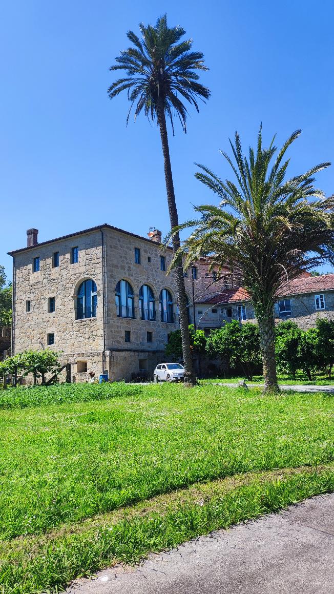 Y en medio de este equilibrio, se alza majestuosa la palmera datilera (Phoenix dactylifera), custodia del jardín desde 1900 e incluida en el Catálogo Galego de Árbores Senlleiras. Este ejemplar no es simplemente vegetal: es un tótem de la identidad del lugar. Plantada como testimonio botánico, su silueta estilizada atraviesa generaciones y conecta la historia de Herbón con los horizontes bíblicos de Palestina, de donde provienen sus raíces más profundas.